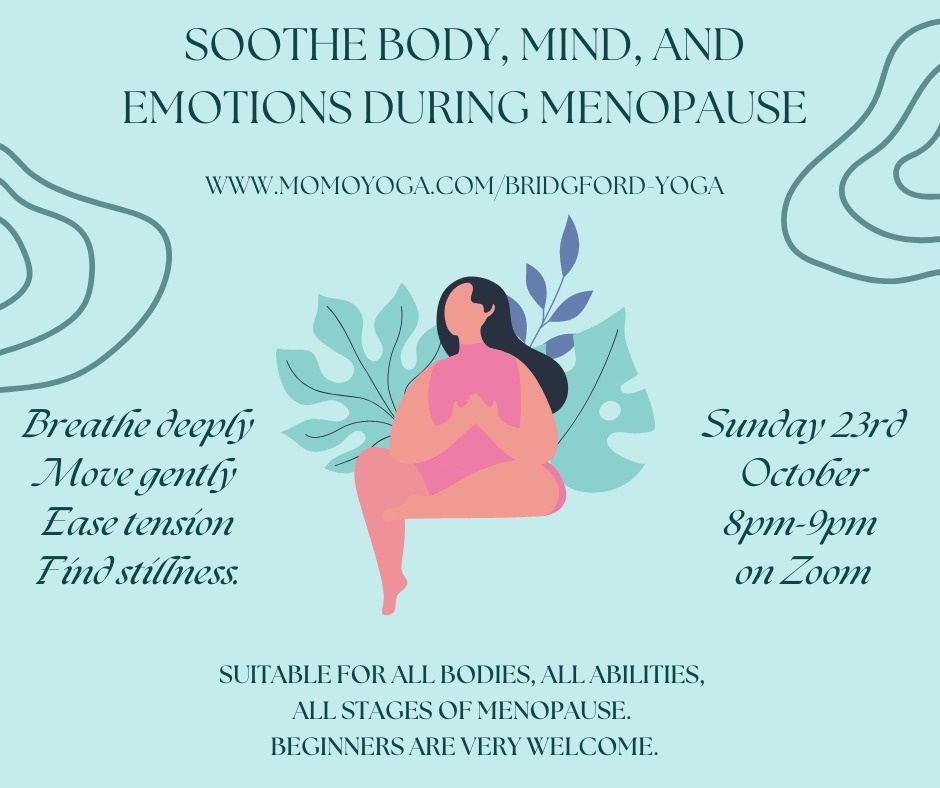 Join this gentle Yoga practice for the Menopause on Sunday 23rd October at 8pm.
